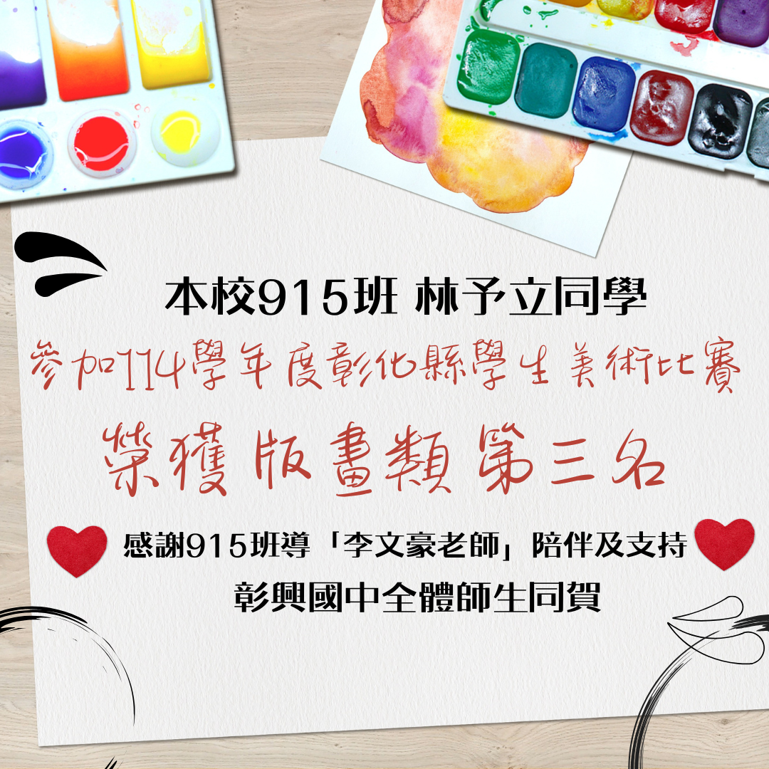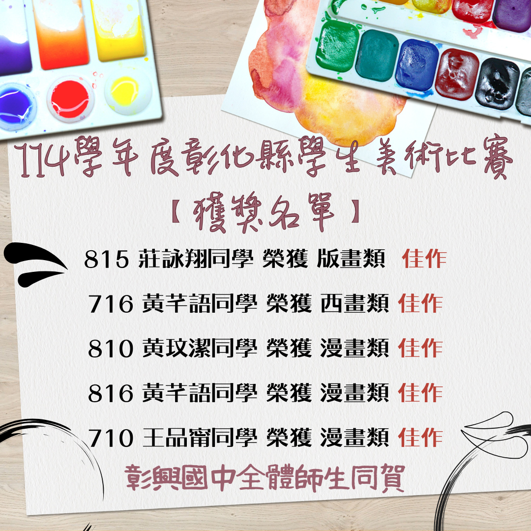 賀!彰興國中同學 參加114學年度彰化縣學生美術比賽 佳作名單!