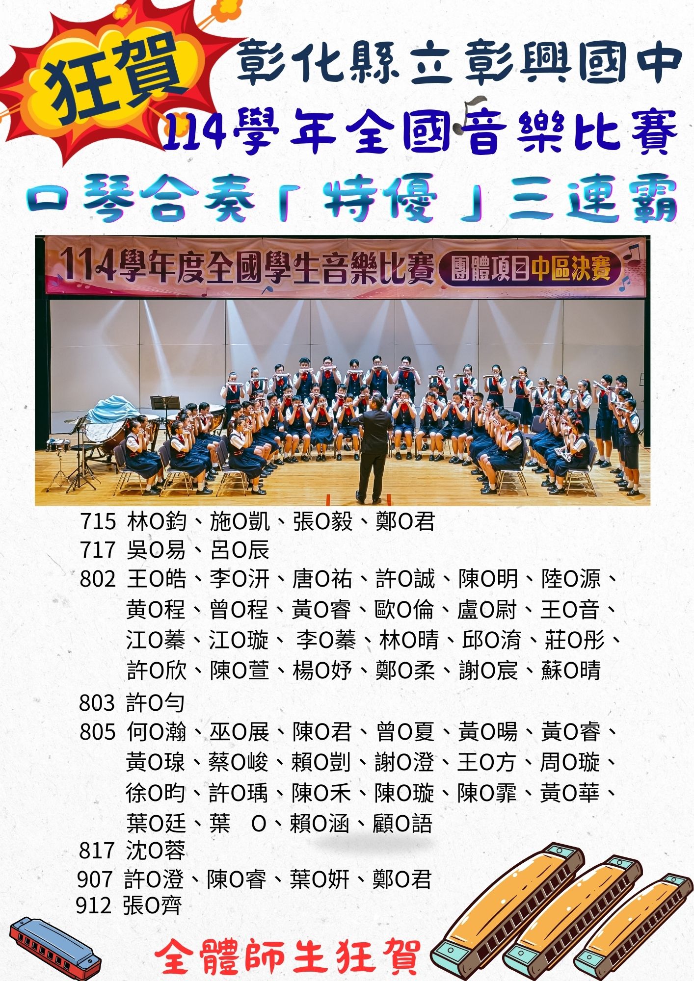 賀!彰興國中口琴團榮獲114學年度全國音樂比賽口琴合奏「特優」!🏆