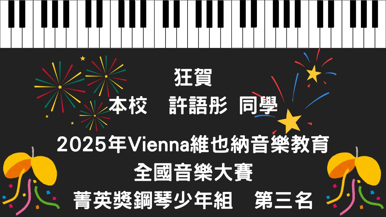 狂賀!712 許語彤參加 2025年Vienna維也納音樂教育 全國音樂大賽 菁英獎鋼琴少年組 榮獲第三名!