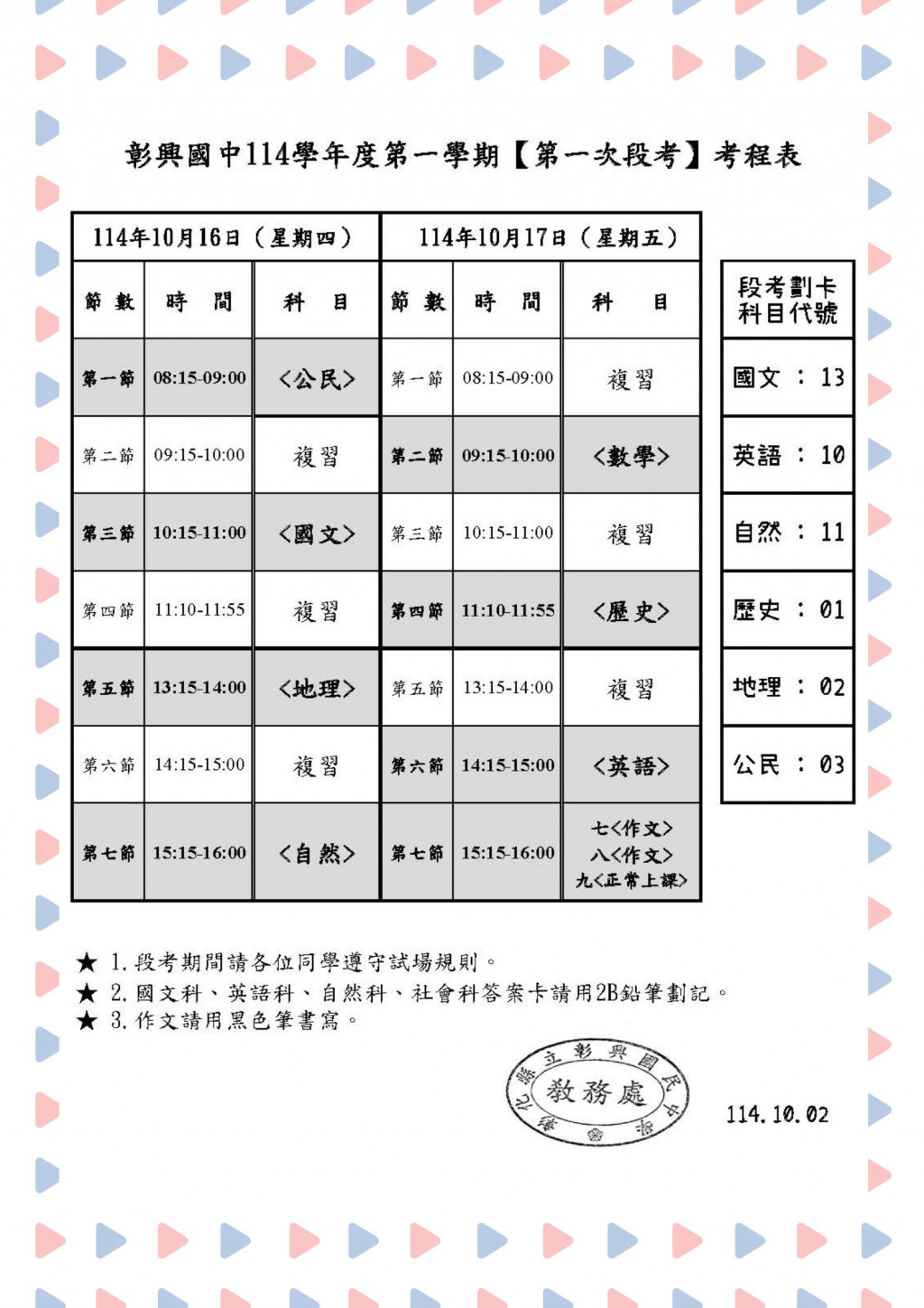 請同學們保持良好作息,調整心情,以最佳狀態迎接段考。祝福各位同學考試順利,金榜題名!🌟