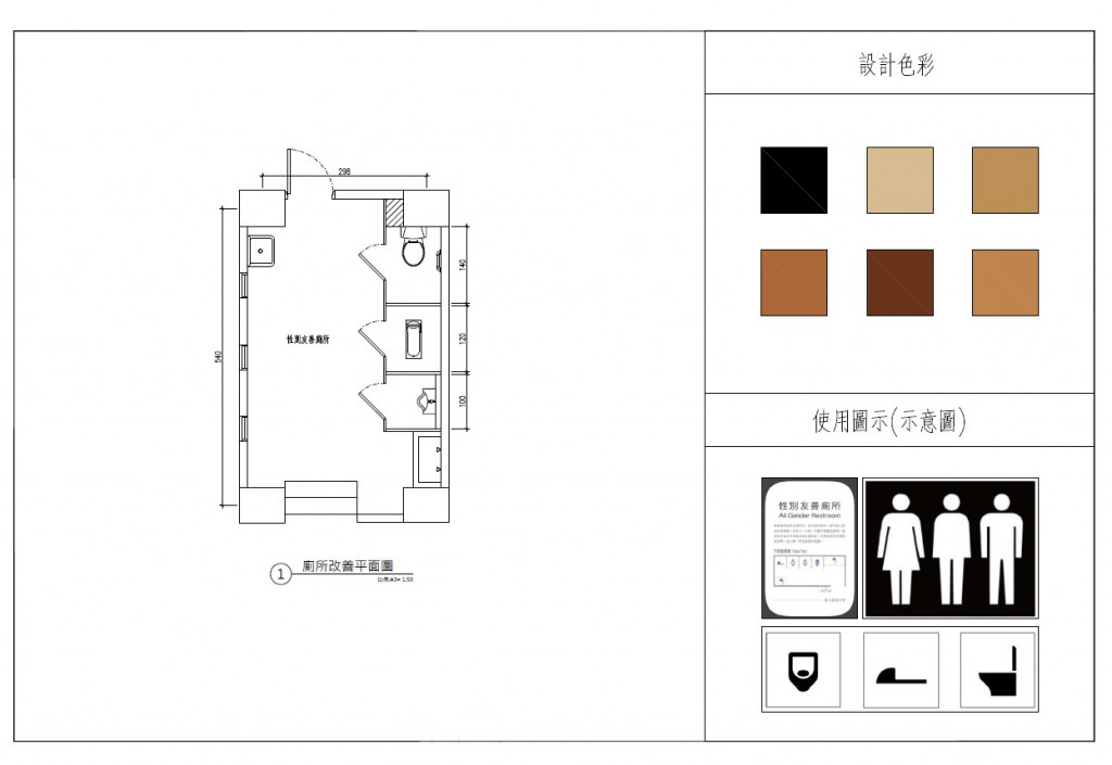 本校獲核定補助114年公立國民中小學老舊廁所整修經費修繕本校圖書館廁所,本間廁所預計設置性別友善廁所,規劃設計示意圖如下,歡迎提供寶貴意見俾利本處匯整後列入規劃內容。